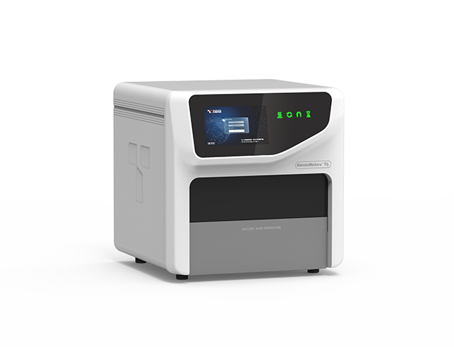 PANA 9600X 全自動核酸提取儀是天隆科技自主研發的一款全自動樣本處理與核酸純化設備。該設備可以滿足原始樣本管帶蓋直接上機,一鍵操作.即可一次性自動完成 96份樣本的信息掃描、樣本管開關蓋、樣本加載、核酸提取、PCR 體系構建的需求。該產品采用天隆科技創新研發的旋轉式磁珠法核酸提取技術(專利號 ZL201710435931.8),匹配性能卓越的專用核酸提取試劑,能夠在更短的時間內,從全血、血清、血漿、拭子洗液、尿液等樣本中提取所需核酸,保證下游的具體應用。